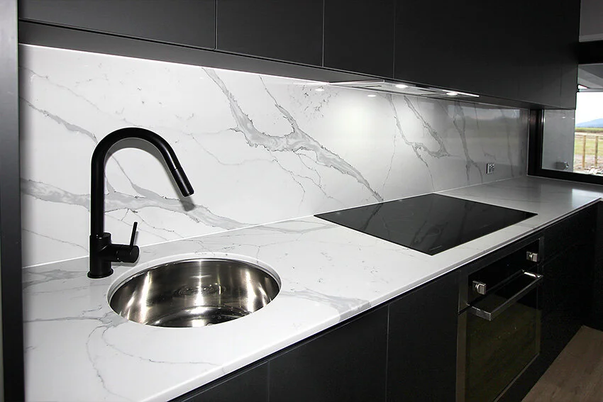 The size and function of a butler’s pantry might range from a simple bench for preparation and perhaps a bit of storage for appliances, right through to an area larger than a kitchen. In this new home in Mackay, recently build by Esprit Constructions, the butler’s pantry is enormous. At one end of the long space is the walk-in pantry that is now common for new homes in Mackay. The remainder of the space is taken up with bench spaces, cupboards (including room for a microwave), a full sink and even a dishwasher. With virtually a complete kitchen at your disposal, the open plan living area can be totally dedicated to entertaining and living. While there is still running water in the main kitchen, it is reduced to a simple mixer and basin, keeping stylish looks while maintaining practicality.